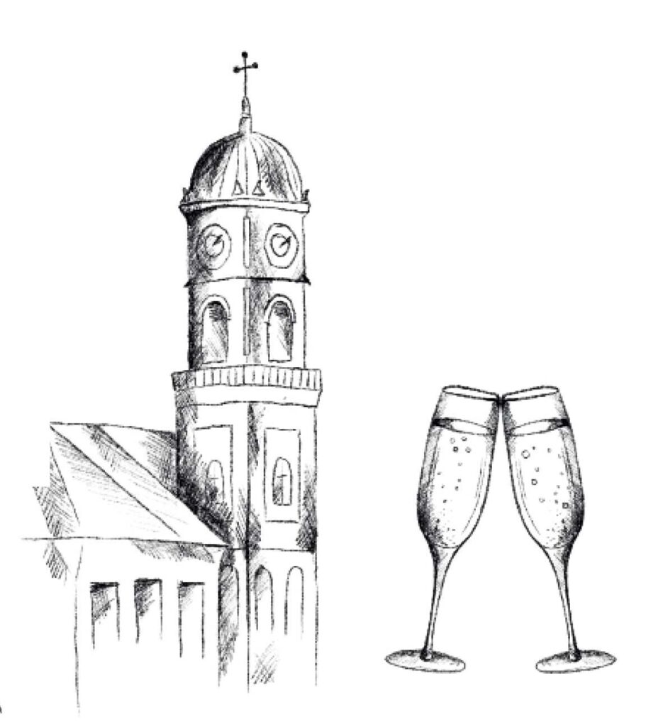 Anschließend gibt es einen kleinen Sektempfang um die Ecke.